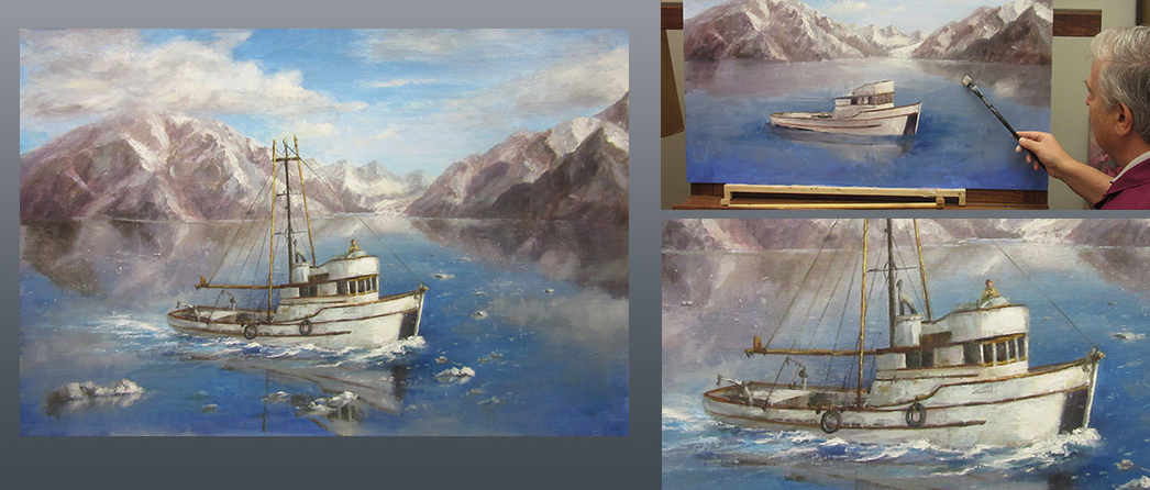 This class focuses on several contemporary landscape and marine painting techniques. Grab your brushes and enjoy a full complete day of painting with David. Create wonderful water reflections, clouds and use his new mountain and color techniques to build wonderful snow-capped realistic mountains with a tremendous amount of perspective and depth.