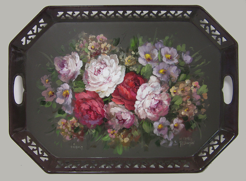 This class opening in mid to late March 2018 focuses on several contemporary floral painting techniques and design. Grab your brushes and enjoy a full complete days of designing and painting with David. Create wonderful peonies, roses and blossoms while using a variety of flower painting techniques from half toned color to his wonderful shear techniques. Learn how to recondition and design on metal trays giving them new life and beauty. Finally learn how to achieve a professional finish that is sure to impress your viewers.
